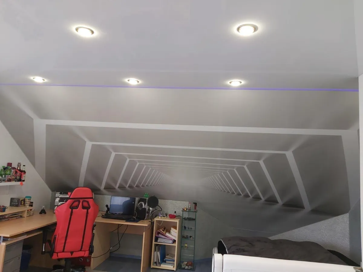 Verwandeln Sie Ihre Räume mit maßgeschneiderten Spanndecken in wahre Wohlfühloasen. Ob matt, glänzend oder mit individuellem Fotodruck – wir bieten Ihnen eine Vielzahl an Designs und Farben, die perfekt zu Ihrem Stil passen.